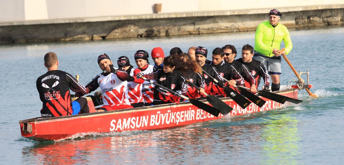 Çin kökenli bir spor olan dragon botta, Türkiye’deki yarışlarda birçok derece elde eden Samsun Büyükşehir Belediyesine bağlı Anakent Spor Kulübünün sporcuları zorlu parkura hazırlanıyor.