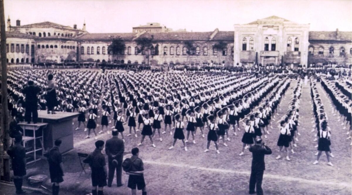Bu fotoğraf, 93 yıl önce bugün, 11 Mayıs 1928’de, Taksim Topçu Kışlası avlusunda düzenlenen “İdman Bayramı” gösterisinde çekildi.