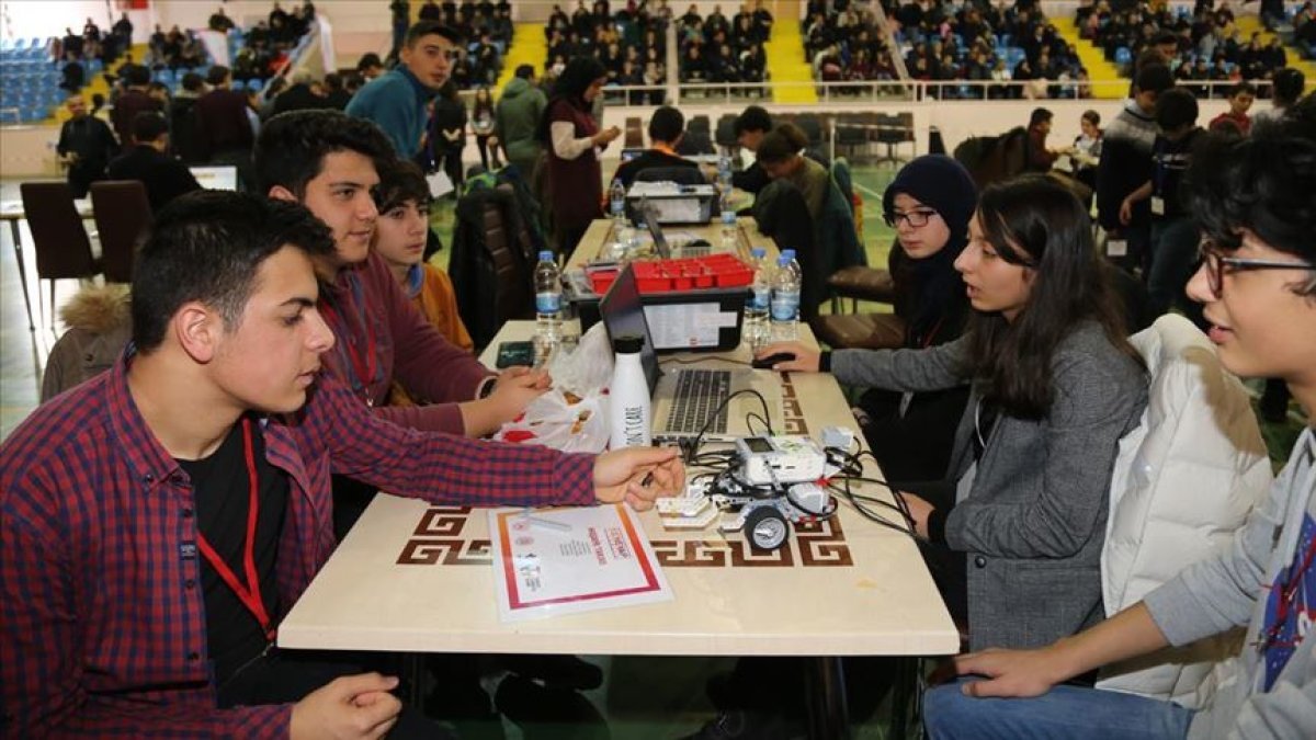 Atölyede tasarım üretim ve robotik kodlama gibi alanlarda eğitim alan 160 öğrenci, Palandöken Kapalı Spor Salonu’nda düzenlenen proje şenliğinde takımlar halinde çalışmalarını sergileyip, tasarladıkları robotlarla matlar üzerinde belirlenen görevleri tamamlamaya çalıştı.