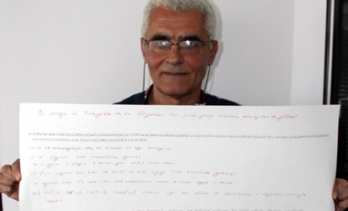 “Şu an Türkiye hesap makinesi üretimi yapamıyor. Benim yaptığım çalışmalar sonucunda şuna ulaştım; Biz de mevcut hesap makinelerinden çok daha kapsamlı olan karmaşık işlemleri yapabilen bir hesap makinesi yapabiliriz. Bunun için devletimizden yardım bekliyorum. Bir ekip oluşturulması halinde bunu gerçekleştirmem çok mümkün. Ben de bu çalışmama dikkat çekmek için bu soruyu hazırladım. Bu soruyu bilgisayarların dahi çözeceğini düşünmüyorum. Sorunun doğru cevabını belirlediğim tarih ve saate kadar bana ulaştıran ilk kişiye tüm mal varlığımı vermeyi taahhüt ediyorum. Bunlar evim, dükkanım ve bankada bir otomobil alacak kadar miktardaki para.”