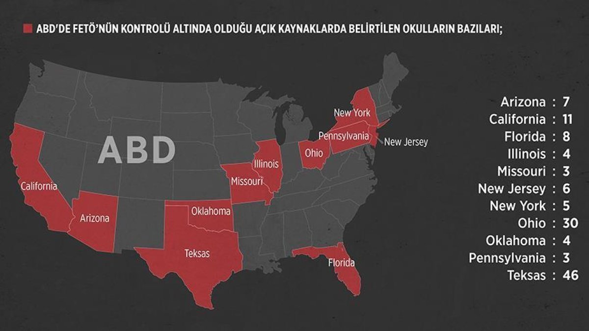 ABD’de FETÖ’nün kontrolü altında olduğu, açık kaynaklarda belirtilen okulların listesi şöyle: