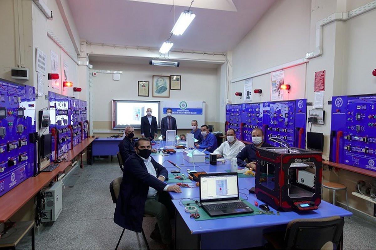 Türkiye’deki meslek liselerinin proje ve ürün geliştirme konusunda ileri seviyelerde olduğunu vurgulayan Güllü, otomatik maske ve el dezenfektanı verebilen, ateş ölçebilen” makine üzerinde de çalıştıklarını sözlerine ekledi.