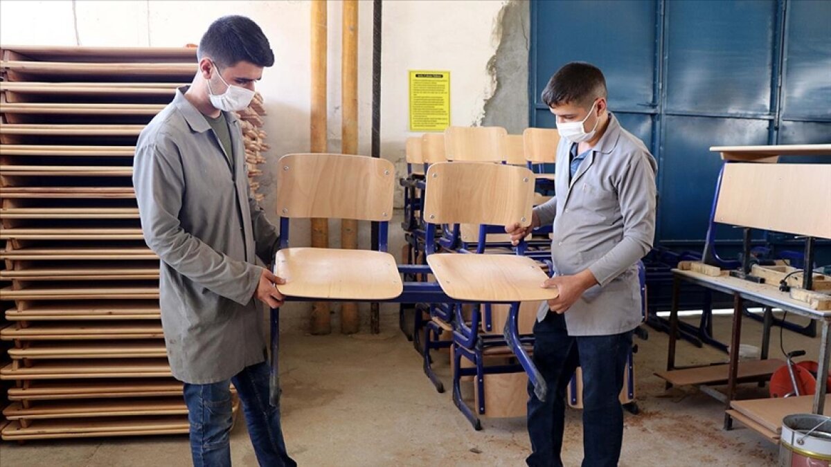 9 bin 570 sıra, 319 masa, 319 dolap, okul idaresi için 51 masa, 17 öğretmenler odası için mobilya, 100 klasör dolabı, 51 bilgisayar masası, 450 sehpanın yapımını tamamlayan öğrenciler, ihtiyaç doğrultusunda üretimi sürdürüyor.
