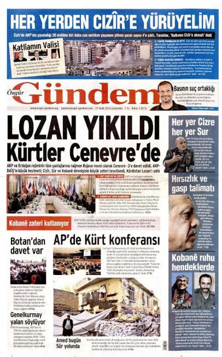 Kürdistan’da yüzyıllık soykırımın adı imiş Lozan Antlaşması. PYD’nin Cenevre konferasında temsil edilmesiyle birlikte Lozan ve Skyes-Picot Antlaşmalarının yıkıldığı yazıyor. Skyes-Picot’la paylaşılmayı amaçlanan vatan topraklarının, Lozan’la bütünlüğü teminat altına alınmıştır. Lozan yıkıldı denilerek aslında Cumhuriyet hedef alınıyor, bölücü amaçlar gazete manşetinden açıkça ifade edililyor.