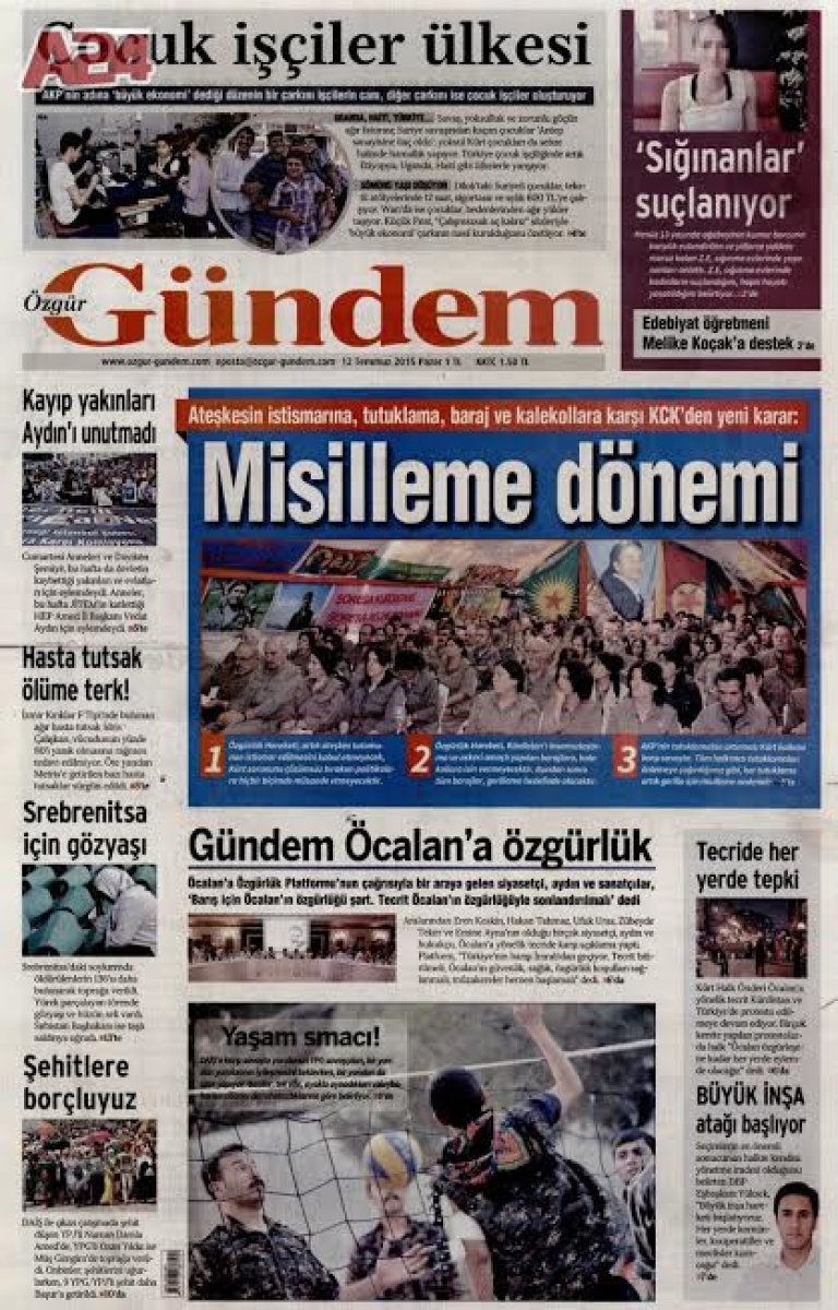 Açılım sürecinde şehirlerde yuvalanan ve 7 Haziran seçimlerinin ardından eylemliliğini artıran PKK’ya karşı tedbirleri artıran Türk Ordusu’na terör örgütü tarafından bir misilleme döneminin başlatıldığının açık göstergesi. İnşa edilen kalekolların ve askeri barajların hedef alındığı PKK manifestosunu bu sayının manşetinde yer alıyor.
