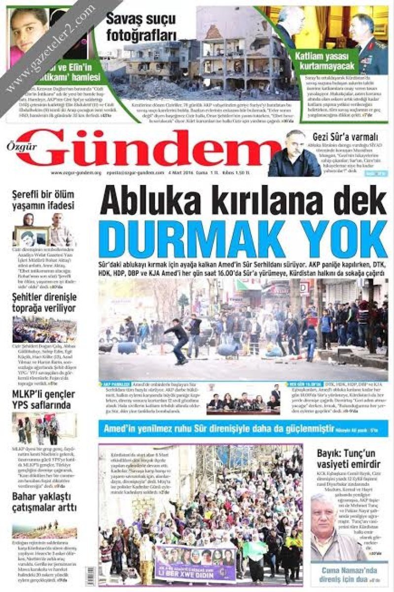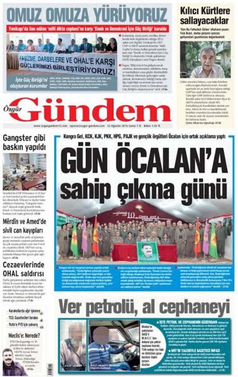Polis Özel Harekat ve Jandarma Özel Harekat’ın yürüttüğü başarılı operasyonlarla PKK’nın beli kırılırken Özgür Gündem bunu vahşet olarak yansıtıyor. Vahşeti PKK, halkı ateşin önüne atarak yapmasına rağmen buna dair en ufak bir şey göremiyoruz. Ayrıca yine PKK’nın üstlendiği Ankara patlamasını ise aynı sayıda kutlayarak veriyor. Özgür Gündem’e göre masum insanları katletmek özgürlüğün ta kendisi. O susturulunca “özgür basına baskı” olmuş oluyor.