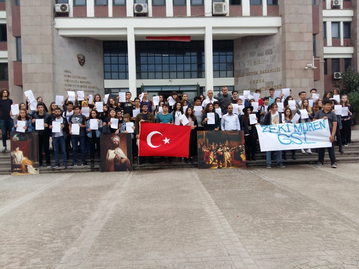Bursa Zeki Müren Güzel Sanatlar Lisesi öğrencileri, okullarının “Proje Okul” kapsamına alınması üzerine basın açıklaması gerçekleştirdi. Okul öğrencilerinin ve mezunlarının yoğun katılım gösterdiği açıklama da öğrenciler, okullarının Türkiye’de güzel sanatlar alanında eğitim veren en iyi okullardan biri olduğunu, mevcut öğretmenlerinin gitmesinin başarı oranlarını düşüreceğini söyledi.