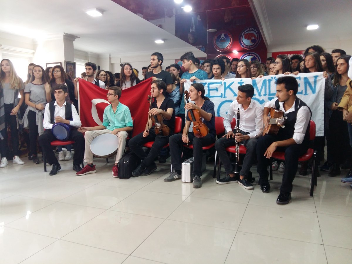 Açıklamada okullarının büyük emeklerle Türkiye’nin güzel sanatlar alanında en iyi eğitim veren okullardan biri haline geldiğini söyleyen öğrenciler, hocalarının değişmesinin başarı oranlarını düşüreceğini söyledi. Basın açıklamasının ardından hep birlikte İstiklal Marşı’nın okunmasıyla eylem sona erdi.Açıklamanın tam metni ise şöyle; Yeni çıkan yönetmelik gereği okulumuzda bulunan öğretmenlerimizin zorunlu tayin edileceğini öğrendik. Okulumuz 1990 yılında yetenek sınavı ile öğrenci alımını yapıp, somut bir binasının olmaması nedeniyle Turizm Otelcilik Meslek Lisesi’nde kullanılmayan dersliklerde resim ve müzik eğitimine başlamıştır. Bu dönemde okulumuzun tek malı olan eski model minibüs ile hangi okul müsaitse oraya gitmek zorunda kaldık. (Fatih Lisesi, Ali Osman Sönmez Teknik Lisesi ve Muradiye Lisesi) 2003 yılında Zeki Müren’in mirasından yararlanılarak Mehmetçik Vakfı ve Türk Eğitim Vakfı’nın yardımıyla okulumuz binası yapılmıştır.