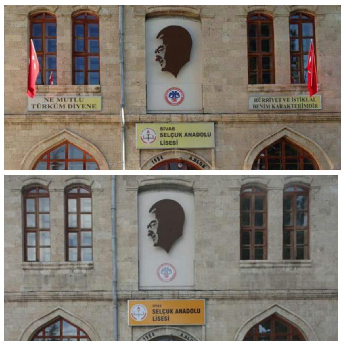 duvarında bulunan, Ulu Önder Mustafa Kemal Atatürk’ün “Ne Mutlu Türküm Diyene” ve “Hürriyet ve İstiklâl Benim Karakterimdir” sözlerinin yazılı olduğu tabelalar  bulunduğu duvardan söküldü. Olayın ardından okulun eski mezunları hızla harekete geçerek internet üzerinden bir imza kampanyası başlattılar.
