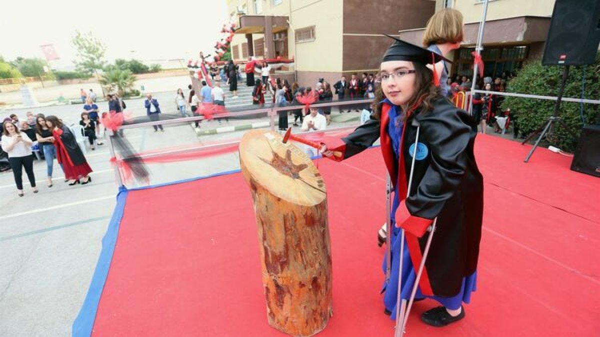 Bursa’nın Yenişehir ilçesinde, sosyal medya üzerinden ders çalışan Ertuğrulgazi Anadolu Lisesi 12’nci sınıf öğrencisi Hatice Kahreman, 93.83 ortalama puanıyla okul birincisi oldu. Okul bahçesindeki mezuniyet töreninde Hatice Kahreman’ın babası Sadettin Kahreman ve annesi Gülcan Kahreman kızlarını yalnız bırakmadı.