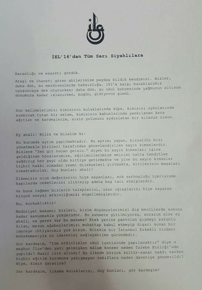 Son günlerde öğrencilerin baskılara karşı tepkileriyle gündemde olan İstanbul Erkek Lisesi mezuniyetinde öğrenciler müdür konuşurken sırtını döndü ve ortaya tarihi bir görüntü çıktı.