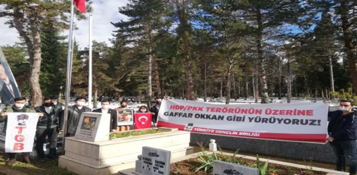 Ziyaretin ardından ‘’Gaffar Okkan’ın taşıdığı bayrak şimdi bizlerin ellerindedir, mücadelesi bizimle sürmektedir. Türk genci emperyalizme boyun eğdirecektir. Yeni Gaffar Okkanlar biz Atatürkçü gençler içinden çıkacaktır. Türk genci var olduğu sürece Gaffar Okkan’lar bitmez. HDP /PKK terörünün üzerine Gaffar Okan gibi yürüyeceğiz. Türk gençliği olarak söz veriyoruz: HDP’yi kapatacağız, PKK’yı bitireceğiz!’’ Açıklamaları yapıldı.