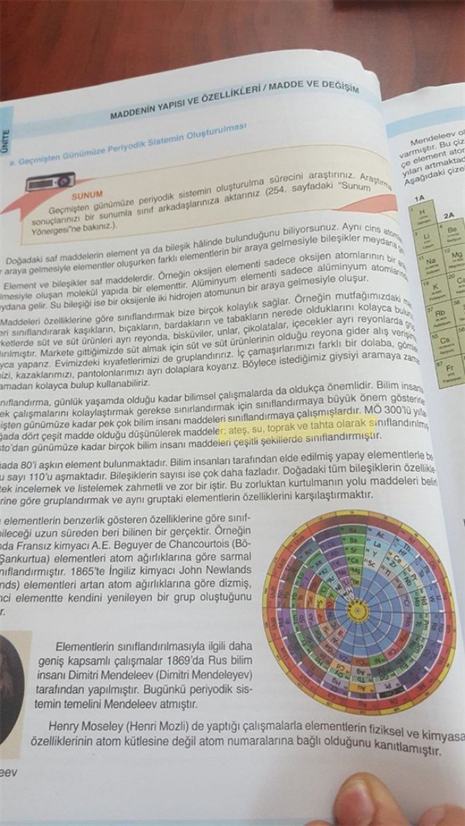 Memurlar.net’te yer alan habere göre, madde yapısı bölümünde, “Doğada dört çeşit madde olduğu düşünülerek maddeler, ateş, su, toprak ve tahta olarak sınıflandırılmıştır” ifadeleri yer aldı.