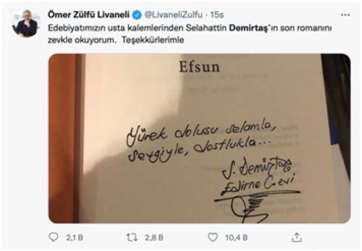 Avrupa’ya iltica etseniz atacağınız tek tivit ne olurdu sorusuna “Demirtaş’a özgürlük.” yanıtı veren.