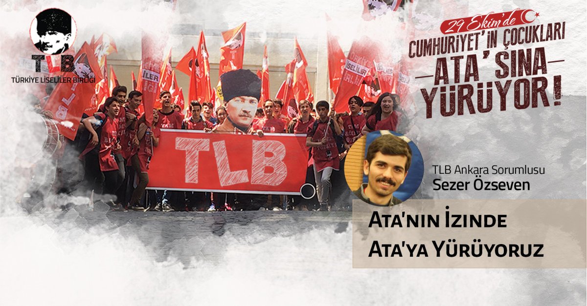 Türkiye’de yükselen o büyük Atatürkçülük dalgası liseleri çoktan kuşattı. Artık gericiliği liselerde sistemleştirmeye yeltenmiş okul idareleri hem içten bastıran hem dıştan bastıran o dalgalara engel olamazlar. Liseliler geçmişte olduğu gibi bugün de Ata’sının izinde, bugün de vatan bildiği liseleri savunma mücadelesinde en önde yürümektedir. Bu yürüyüş, Tıbbiye, Harbiye ve Mülkiye koridorlarındaki vatan ve hürriyet sevdalısı öğrencilerin başlattığı o büyük yürüyüştür. Bu yürüyüşün 1908 Hürriyet Devrimi’nden, Çanakkale Savaşı’ndan, Cumhuriyet Devrimi’nden geçmiştir. Bu yürüyüş yıllarca cumhuriyetin yarattığı kuşak tarafından sürdürülmüştür. Deniz Gezmişler, Uğur Mumcular, Attila İlhanlar, Tarık Akanlar yürümüştür bu yolda. Bu yürüyüş cumhuriyetin yarattığı gençliğin Ata’sının izinde, Ata’sına yürüyüşüdür. Şimdi ise TGB-TLB önderliğinde ayağa kalkan vatansever Türk gençliği sürdürmektedir bu uzun yürüyüşü. Gericiliğin sistemli bir halde liselerde örgütlenmesine karşı ayağa kalkan liseli arkadaşlarımızı bizimle birlikte bu uzun yürüyüşe davet ediyoruz! Cumhuriyet’in çocuklarını, Ata’sının izinde, Ata’ya yürümeye davet ediyoruz! Haydi! Hep birlikte 29 Ekim saat 13.00’da Kızılay/Güvenpark’ta buluşup Anıtkabir’e yürüyelim!