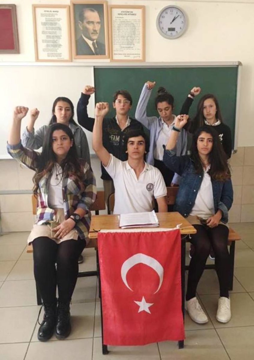 Değerli arkadaşlar dün okulumuzda müdürlük görevini yürüten Zafer Saruhan’ın türbanlı arkadaşlarımızı konferans salonuna toplayarak onlara yapmış olduğu açıklama hepimizi rahatsız etmiş ve tepkimizi çekmiştir. Bu açıklama tamamen laikliğe karşı yapılmış bir hamle ve karna eğitim sistemine karşı vurulmak istenen bir darbedir. Günümüz de yobaz eğitimcilerin bu konuya bu denli kafayı takmış bulunmalarını anlıyoruz. Korkuyorlar! Atatürk ile büyüyen bir gençliğin onların bu gerici uygulamalarına boyun eğmeyeceğini görecekler.