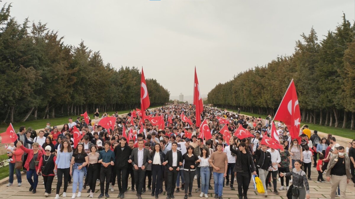 I. Meclis önünde toplanan liseliler, “Z Kuşağı Değil, Türk Gençliğiyiz”, “Uyma, Uyuşma, Hayatı Yaşa”, “Atatürk Gençliği Görev Başında”, “Erenler Yaşasın, HDP Kapatılsın” sloganlarını attı. Anıtkabir’e yapılan yürüyüş, ellerinde Türk bayraklarıyla buluşan binlerce liselinin saygı duruşunda bulunması ve İstiklal Marşı’nı okuması ile başladı.
