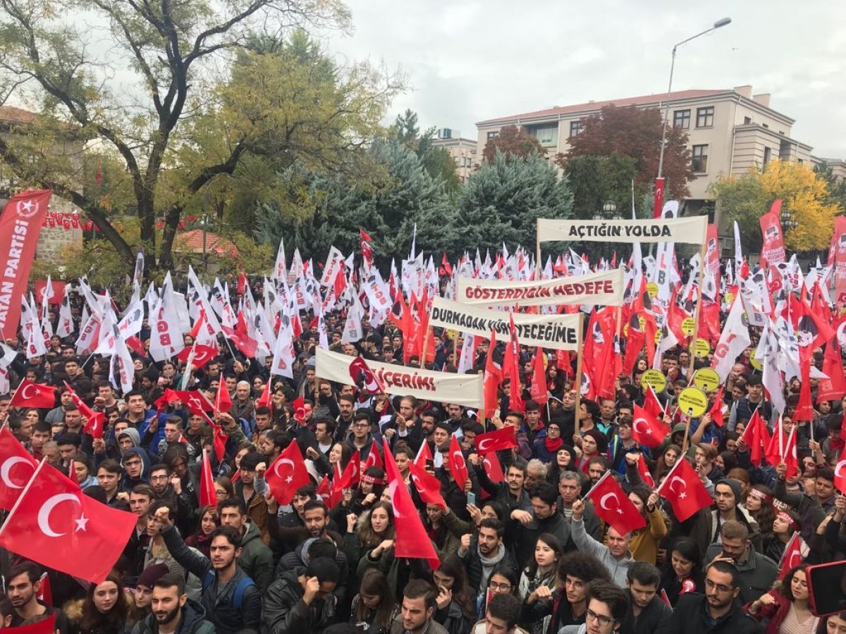 Açtığın yolda, gösterdiğin hedefe, durmadan yürüyeceğime ant içerim pankartı ile eyleme damga vuran TLB, Mustafa Kemal’e ve Cumhuriyet devrimine selam gönderdi. Kahrolsun Amerikan emperyalizmi sloganının yankılandığı Ankara sokaklarından halktan büyük destek görüldü ve Anıtkabir’de yüzbinler buluştu.