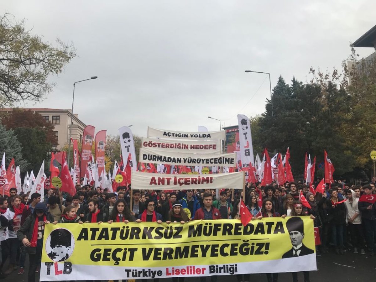 Türkiye’nin dört bir yanından gelen binlerce Atatürkçü vatansever liseli Ankara İkinci Meclis önünden Ata’sının huzuruna, Anıtkabir’e yürüdü. Mustafa Kemal’in askerleriyiz, Atatürk gençliği görev başında, İstiklal yolunda Mehmetçiğin yanında sloganları ile yürüyen liseliler Atatürksüz müfredata geçit vermeyeceğiz dediler.