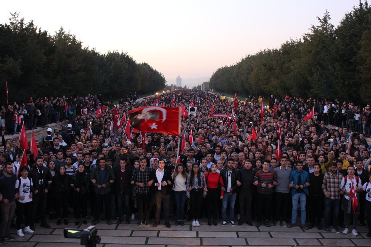 20 bin gence öncülük ettiğimiz yürüyüşte Birinci Meclis’te Genel Başkanımız Hakkı Erman Ergincan Andımız’ı okuttu. Ardından onbinlerle Anıtkabir’e yürüyerek, bir kez de Ata’mızın huzurunda Andımız’ı okuduk. Hazırladığımız “Gençlik bitti sandınız, işte size Andımız” pankartını yürüyüş boyunca taşıdık. Ayrıca en önde taşıdığımız “Türküm, doğruyum, çalışkanım” pankartı ve döviz denizi haline getirdiğimiz kortejimiz oldukça ilgi çekti.
