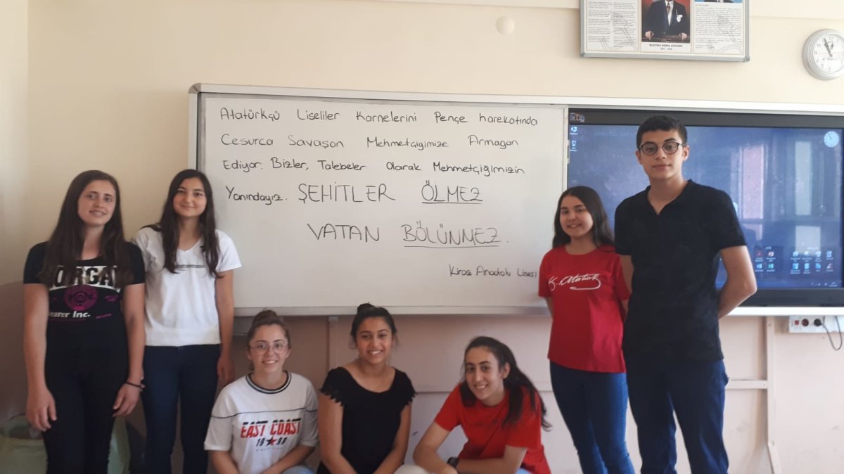 Liseliler ayrıca sınıflarında tahtalara “şehitler ölmez vatan bölünmez” yazarak terörle mücadele eden güvenlik güçlerine selam yolladılar.