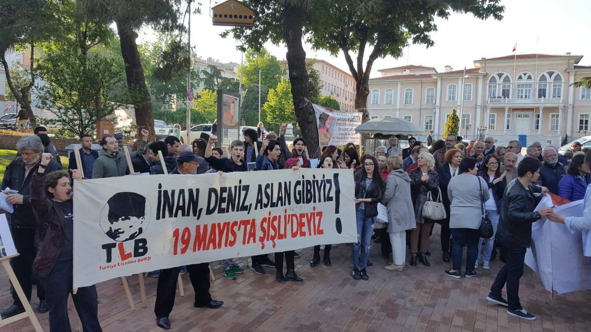 Tuğlalı Park’ta basın açıklaması için toplanan TLB’liler “İnan Deniz Aslan Gibiyiz” sloganlarıyla alanı doldurdular.