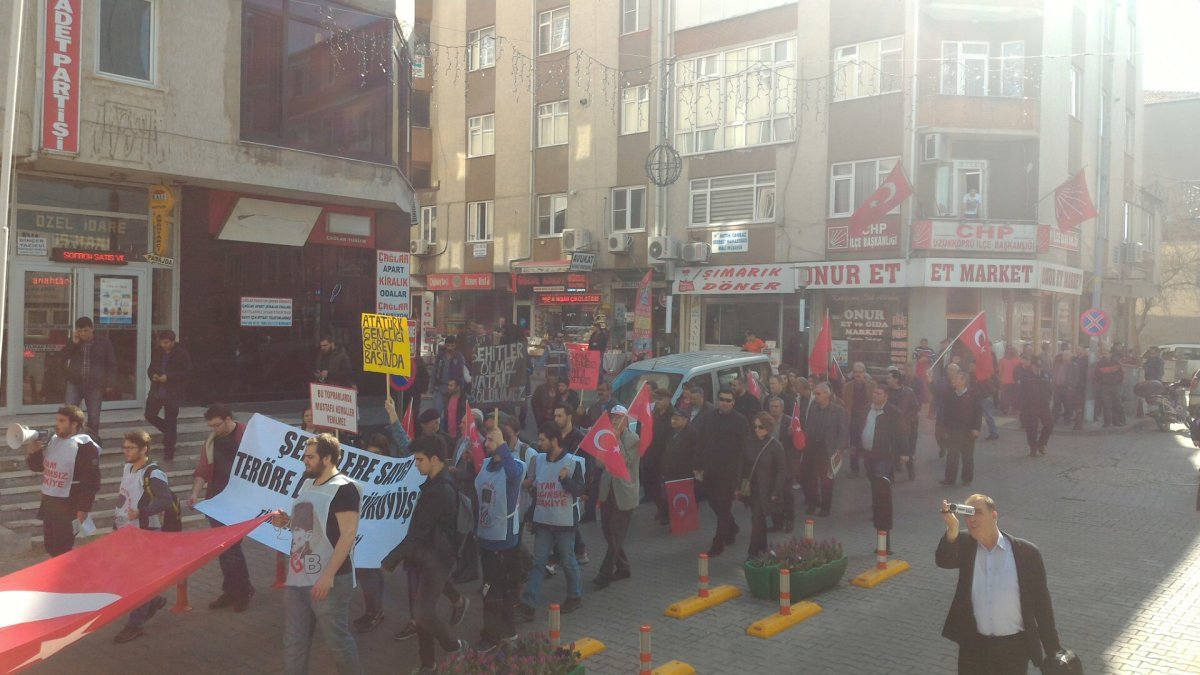 Düzenlenen yürüyüşe Uzunköprü Belediye Başkanı Enis İşbilen, CHP, ADD ve Vatan Partisi katıldı. Ellerinde Türk Bayrakları ve Atatürk posterleriyle yürüyen vatandaşlar, “Şehitler ölmez, vatan bölünmez”, “Kahrolsun PKK”, “Her Türk asker doğar”, “Ne Mutlu Türküm Diyene” sloganları atarak, teröre lanet yağdırdı.