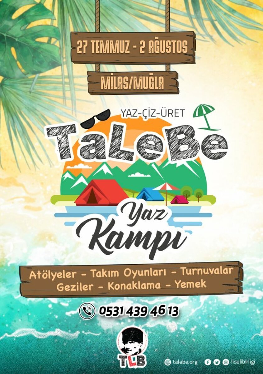 Türkiye Liseliler Birliği (TLB) Yaz Kampı başlıyor. Türkiye’nin 81 ilinden kampa katılacak vatansever ve Atatürkçü liseliler olarak , 27 Temmuz-2 Ağustos’ta Muğla Milas’ta buluşuyoruz.